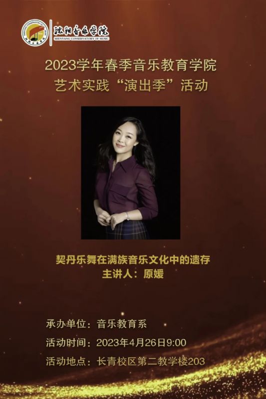 音乐教育学院音乐教育系于2023年4月26日举办了沈阳音乐学院科研项目《契丹乐舞在满族音乐文化中的遗存》结题公开课活动,主讲人为音乐教育系副教授原媛。