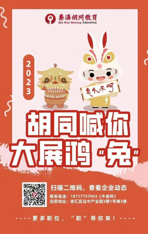上海秦汉胡同教育始创于2002年,在北京、上海、深圳、广州、杭州、南京、宁波等城市共开设120家校区,30余项优质课程,已成长为国内具备一定规模和影响力的文化教育品牌。