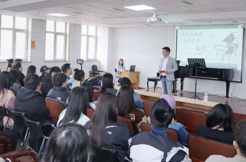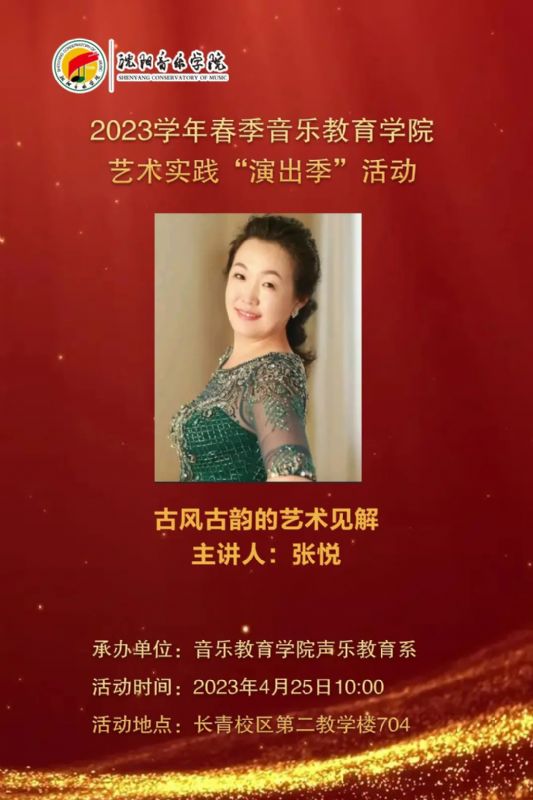 2023年4月25日在沈阳音乐学院长青校区第二教学楼704室,音乐教育学院声乐教育系开展了一场由艺术指导张悦老师主讲的公开课——《古风古韵的艺术见解》,声乐教育系副主任李明月主持了本次活动。