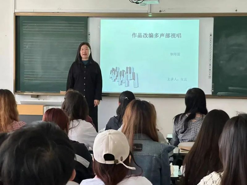 音乐教育学院专业基础课教研室乐理与视唱练耳教研组于2023年4月24日在长青校区举办了《作品改编多声部视唱》公开课。旨在提高全体教师对实际作品改编为视唱曲的技能,增强教师的课程实践能力,更好地贴近学生专业,增加学生学习视唱练耳课程的兴趣。