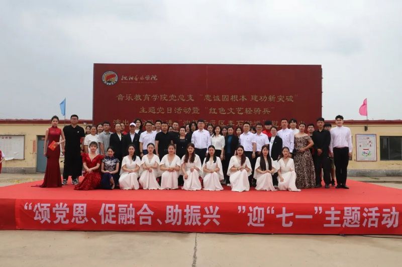 为深入贯彻党的二十大精神,推进学习贯彻习近平新时代中国特色社会主义思想主题教育走深走实,充分发挥学科专业优势,促进校地融合,助力乡村振兴。6月20日,沈阳音乐学院红色文艺轻骑兵第54小分队(音乐教育学院民族器乐教育系党支部)与沈抚改革示范区李石街道党工委开展“颂党恩、促融合、助振兴”文艺助力乡村振兴活动暨“忠诚固根本 建功新突破”主题党日活动。音乐教育学院党总支书记陈可可、副书记白晓微、民族器乐教育系主任刘娜、党支部书记吴琼,沈抚改革示范区李石街道党工委书记邓军、街道主任赵凤来、田屯村党总支副书记毛静及双方代表200余人参加活动。