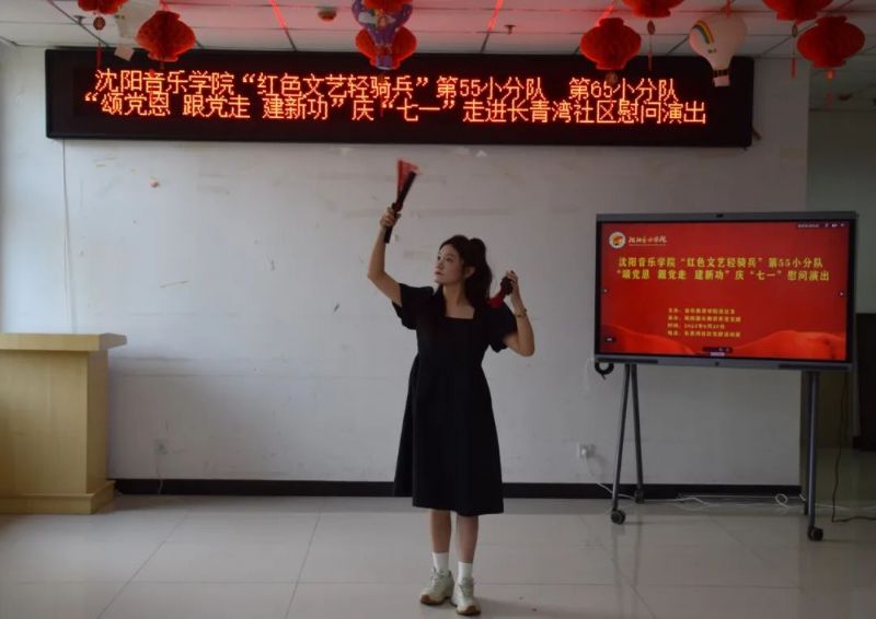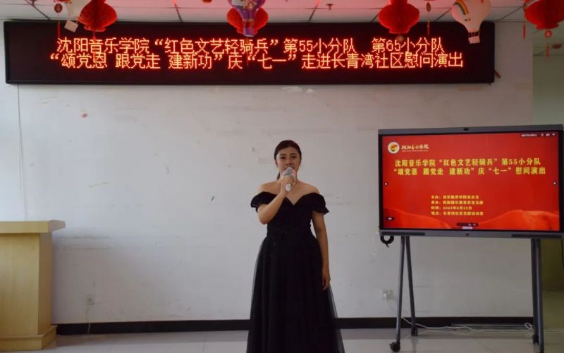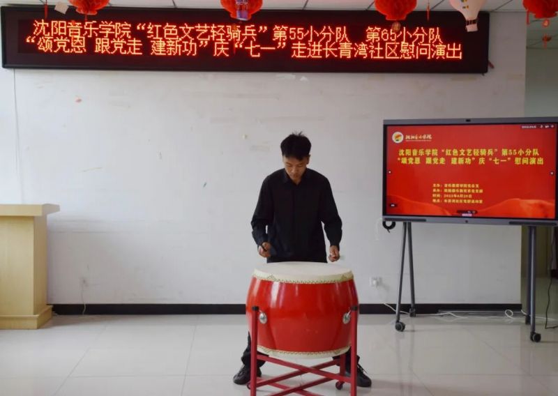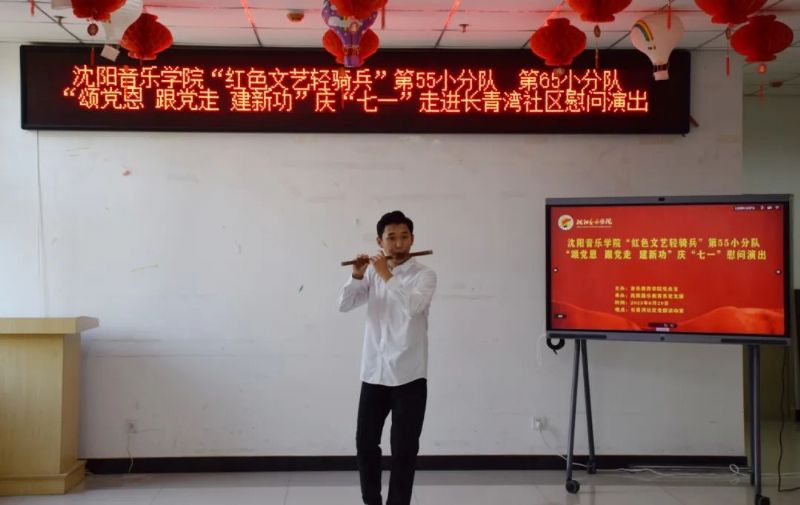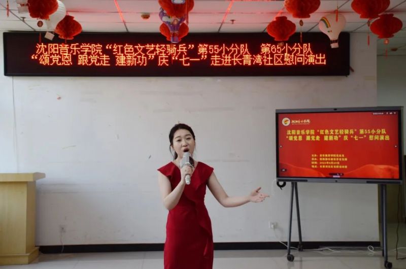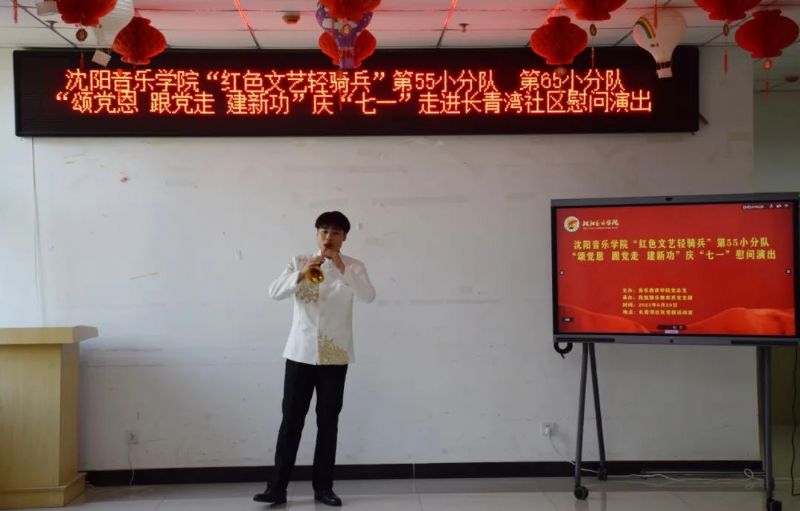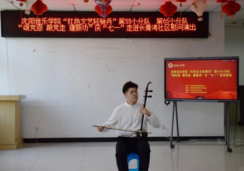 为热烈庆祝中国共产党成立102周年,秉承新时代高等艺术院校肩负的初心和使命,弘扬鲁艺精神,传承红色基因。6月29日,沈阳音乐学院红色文艺轻骑兵第54小分队(音乐教育学院民族器乐教育系党支部)、第65小分队(音乐教育学院院办教管学管联合党支部)走进五三街道长青湾社区,开展“颂党恩 跟党走 建新功”庆“七一”文艺演出活动。