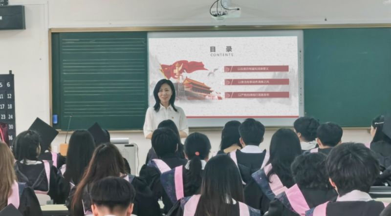 她勉励大家,在未来的生活中,要养成良好的行为习惯,树立廉洁观念、锤炼廉洁素养、践行廉洁行为,提升道德修养,把个人前途和国家命运、个人追求同国家发展紧密联系起来,与时代同步伐、与人民共命运,成为志存高远、品学双馨、勇于担当的时代精英。