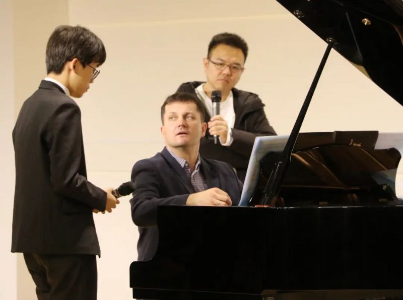 •       在沈阳音乐学院建校85周年之际,波兰德莱夫斯基音乐学院彼得·什霍夫斯基(Piotr Szychowski)教授受邀于2023年11月9日下午在长青校区为音乐教育学院师生举办大师班授课。音乐教育学院院长吴家军以及国际交流合作处领导、键盘器乐教育系、音乐教育系师生代表共计200余人参加此次活动。大师班由键盘器乐教育系副主任陆冬主持。