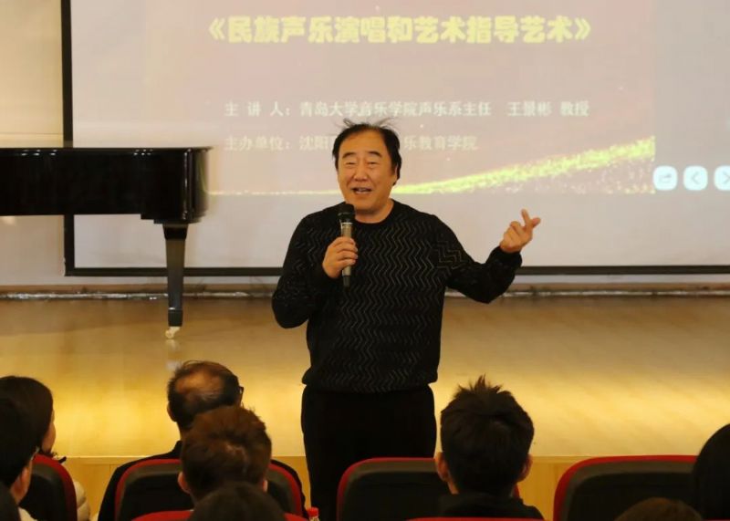 应沈阳音乐学院音乐教育学院邀请,青岛大学音乐学院声乐系主任、声乐学科带头人、旅美男低音歌唱家、声乐教育家,上海音乐学院、中国音乐学院、武汉音乐学院等学院专家歌剧导演王景彬教授于11月7日至8日在长青校区举办了题为《民族声乐演唱和艺术指导艺术》的大师班讲学和专家讲座,音乐教育学院相关专业师生参加活动。
