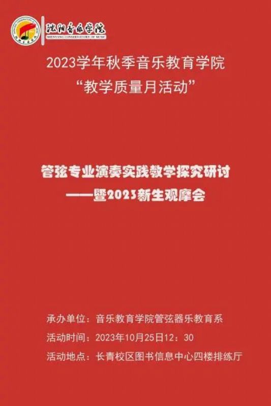 2023年10月25日12:30在长青校区图书信息中心四楼排练厅举办了“管弦器乐教育系2023级新生观摩会”。全体新生和各专业主教教师参加了本次观摩会。