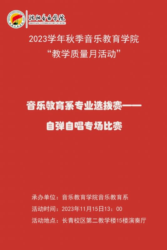 音乐教育系于2023年11月15日在我院第二教学楼15楼演奏厅成功举办了首届音乐教育系自弹自唱专场比赛。音乐教育系领导班子出席并组织比赛,本场比赛评委由系内多名教授、副教授担任,为比赛的公平公正保驾护航。