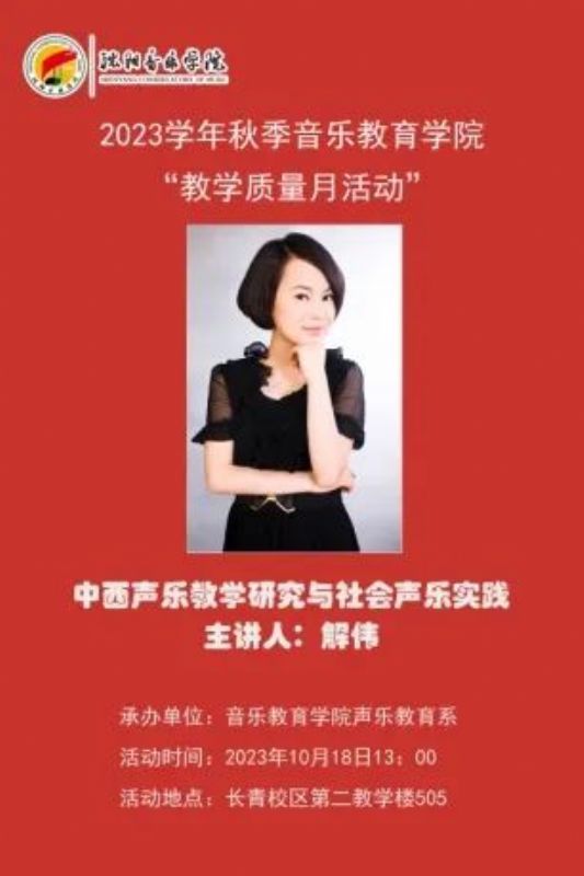 在音乐教育学院教学质量月系列活动期间,声乐教育系解伟老师于2023年10月18日在长青校区举办《中西声乐教学研究与社会声乐实践》教学公开课。