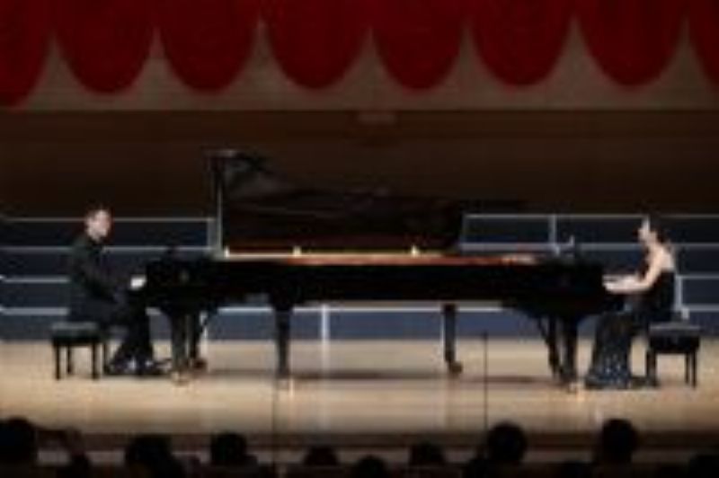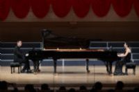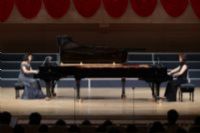 5位青年教师先后演奏了钢琴曲《肖邦f小调叙事曲Op.52》、双钢琴曲《假面舞会随想曲》和《迪祖·吉莱斯皮“曼特卡”双钢琴释义曲Op.129》,将具有音乐符号意义的经典钢琴作品展现在舞台上,向观众展示美轮美奂、变换无穷的音乐画面。