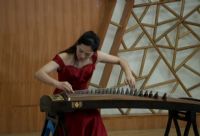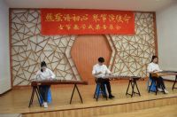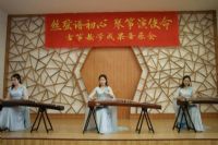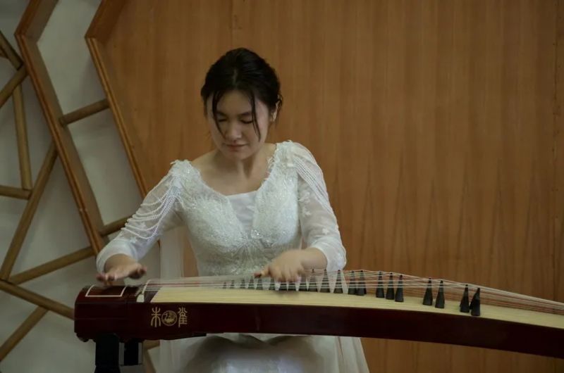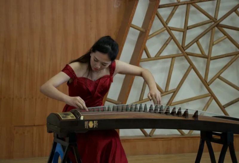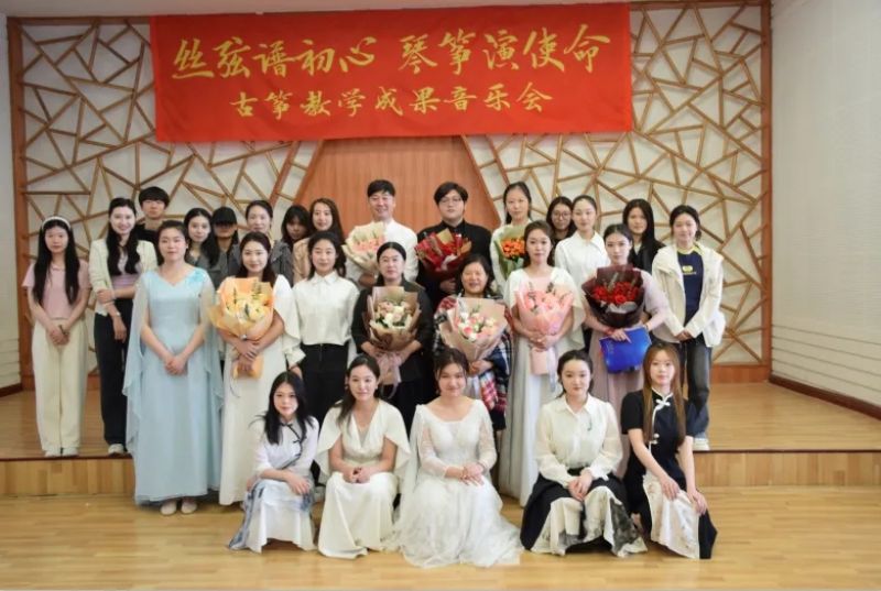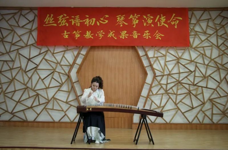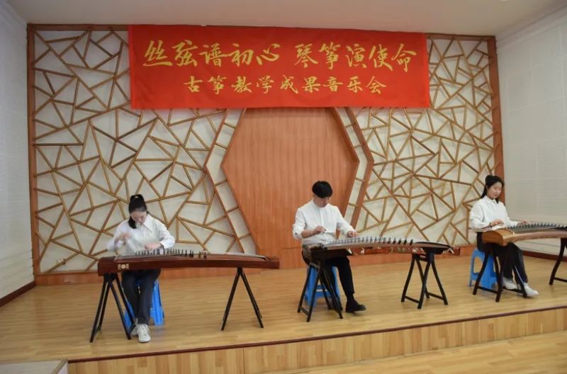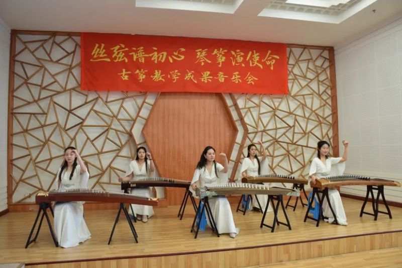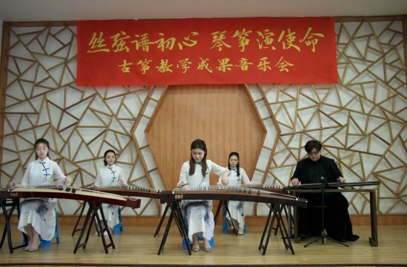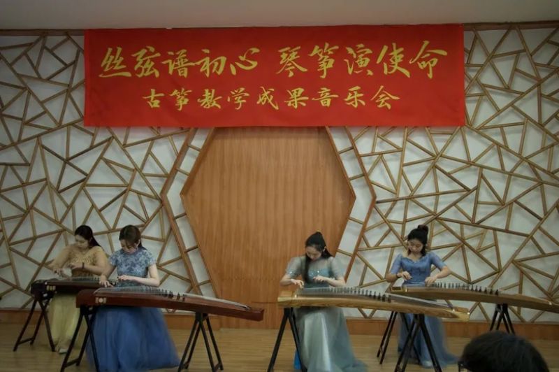 音乐会由乌云塔娜老师原创作品《沈水情韵》拉开序幕,明快的节奏为学生描绘了沈水的壮丽情韵与大气的宽阔胸怀。随后演奏了《秦土情》《云裳诉》《溟山》《行者》《幻想曲》,及重奏乐曲《半山听雨》《醉太平》《定风波》。这些乐曲不仅展现了宋韵文化内涵,还表达了乐观旷达的豁达人生观。音乐会最后,以《中国之声——红色曲缀》落下帷幕,映山红、唱支山歌给党听、东方红、保卫黄河等经典筝曲联奏,将音乐会的现场气氛推向高潮,祝福我们的祖国欣欣向荣,表达了对祖国的热爱和赞美之情。