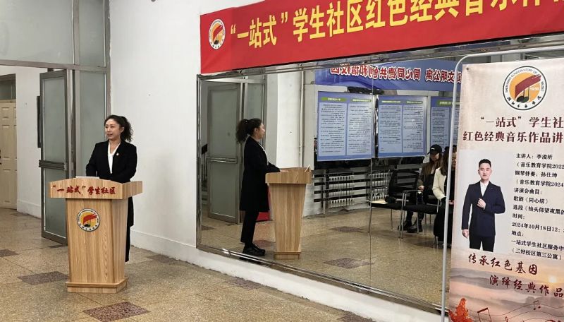 10月18日,由学院举办的第32期“一站式”学生社区红色经典音乐作品讲演会在三好校区“一站式”学生服务中心举行。音乐教育学院相关负责人、辅导员及50余名学生代表参加讲演会。讲演会由音乐教育学院辅导员刘佳楠主持。