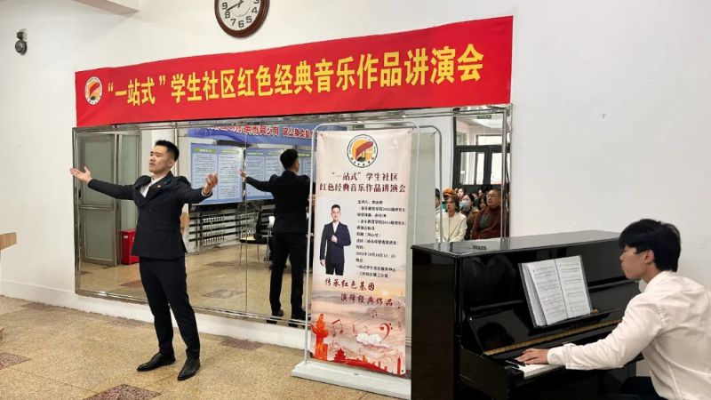 本期的讲演曲目是《抬头仰望夜黑的天》。主讲人是音乐教育学院音乐教育系2022级研究生李浚圻,音乐教育系2024级研究生孙仕坤担任钢琴伴奏。