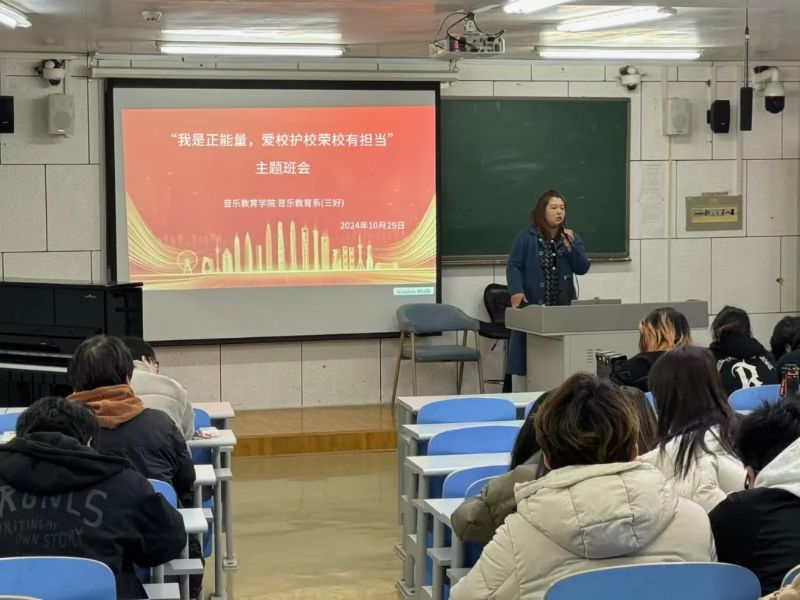 为加强同学们爱校护校荣校教育,牢固树立“我与学校共成长”的主人翁意识,音乐教育学院组织87个班级开展“我是正能量,爱校护校荣校有担当”主题班会,让“爱校”成为一种行为习惯、“护校”成为共同的使命担当、“荣校”成为文化自觉。
