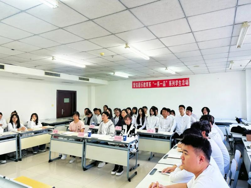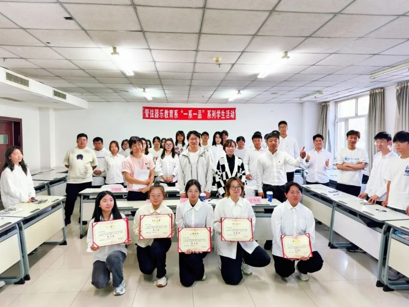 管弦器乐教育系举办“拼技能 促学风 展风采——视唱练耳比赛”。本次比赛分为听音竞赛、视唱竞赛、颁奖三个环节,同学们在比赛时采用随机抽签的形式进行视唱,视唱的过程中按照要求边唱边打拍子。经过激烈角逐,最终5名同学脱颖而出。通过此次比赛增强同学们学习的趣味性和动力,将课堂上所学到的优秀音乐作品用不同的形式展示在舞台上,不仅巩固了学生在课堂上学习到的理论知识,更加充分地发挥学生的艺术表现力,让同学们在“比中学、赛中学、乐中学”。