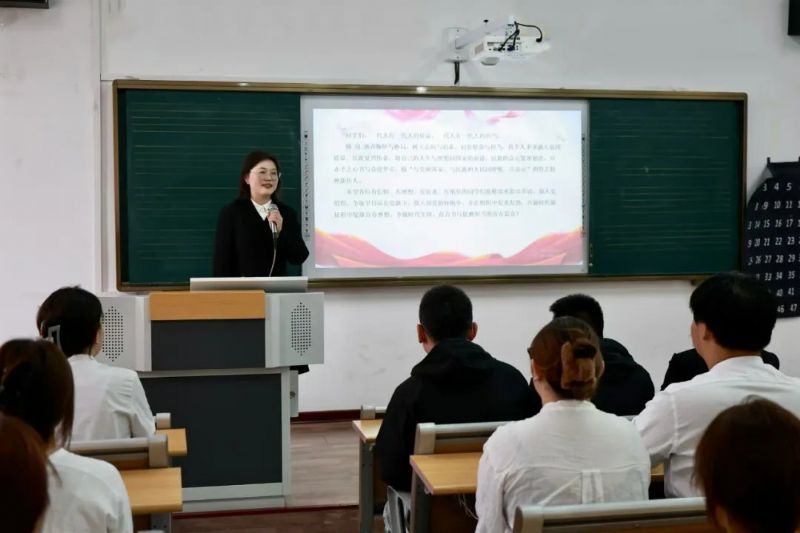 党课中,她结合党的二十届三中全会精神和全国教育大会精神,以大学生发展党员标准、如何端正入党动机和党员发展基本程序等为主要内容,讲解了中国共产党的性质、指导思想、最终目标和现阶段任务,讲述了校史和音乐教育学院的发展沿革,教育引导学生进一步感悟校史底蕴,增强对学校的归属感、认同感和自豪感。她强调青年学子应点燃理想信念的“火种”,深耕厚植爱党、爱国、爱社会主义情感,弘扬光荣传统、赓续红色血脉,坚定理想信念,将个人事业融入强国建设、民族复兴伟业,将自己的人生与理想同国家的前途、民族的命运紧密相连,做“与党和国家、与民族和人民同呼吸、共命运”的鲁艺精神新传人。