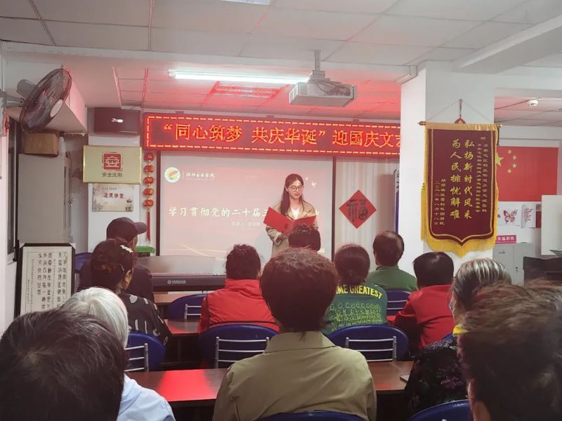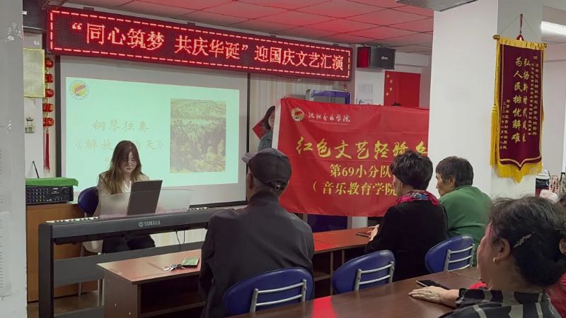在国庆佳节前夕,为丰富基层群众的精神文化生活,推动党的二十届三中全会精神走深走实走心,音乐教育学院组织“红色文艺轻骑兵”第69小分队通过“文艺+宣讲”的形式,走进苏家屯区解放街道站前社区,深入基层开展惠民演出活动,传递党的声音和关怀,营造欢乐祥和的国庆氛围。