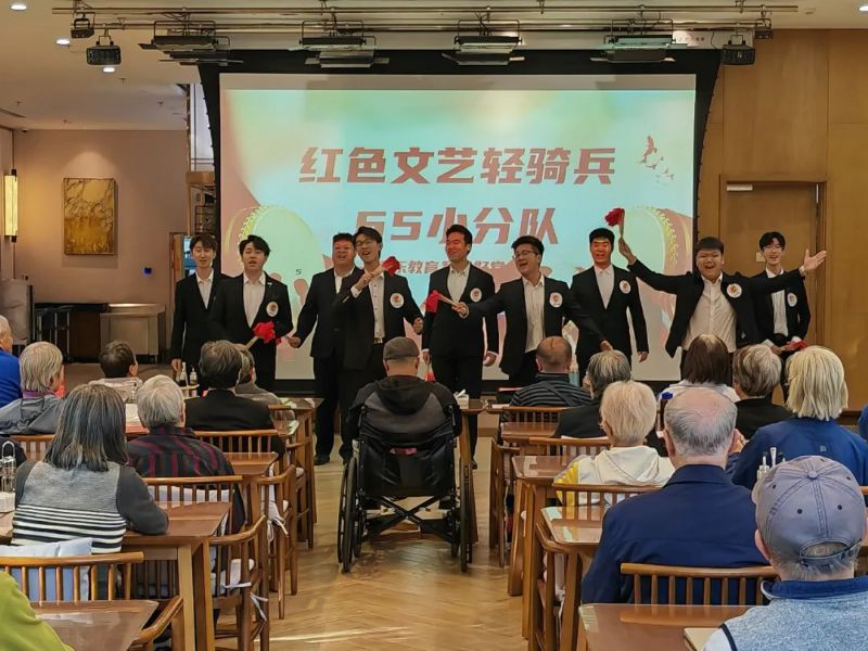为庆祝中华人民共和国成立75周年,9月25日,音乐教育学院组织“红色文艺轻骑兵”第65小分队走进沈阳市润馨汇颐养中心,同现场100余名老人欢聚一堂,共同抒怀对祖国的深厚感情。