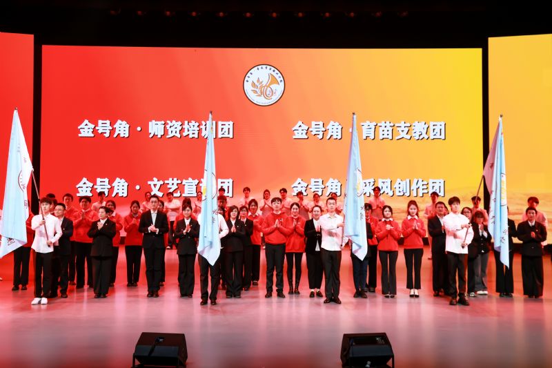 张威宣布“金号角·音乐育苗振兴计划”正式启动,志愿团成员共同宣誓,并开展文艺演出。成员们精神饱满、意气风发,洋溢着青春的活力,现场气氛热烈。最后,全体人员共同唱响沈阳音乐学院原创歌曲《血脉》,活动圆满落下帷幕。