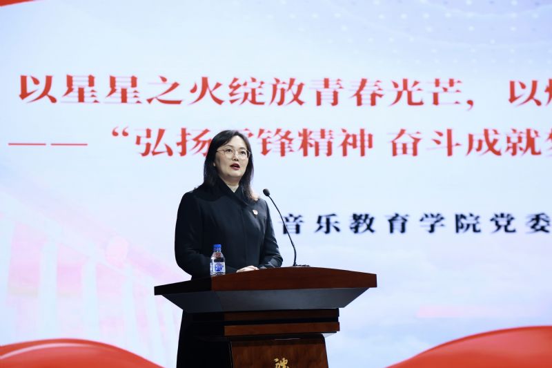 音乐教育学院党委书记李静以《以星星之火绽放青春光芒,以燎原之势担当时代之责》为题讲授春季学期“开学第一课”。她对“金号角·音乐育苗振兴计划”进行了解读,并从“开展艺术惠民,擦亮‘红色文艺轻骑兵’品牌”“深耕青年志愿服务,续写新时代‘雷锋日记’”“为特殊群体赋能,打造志愿服务专项品牌”三个方面,介绍了音乐教育学院近年来引领师生坚守初心使命、勇挑时代重任,深入开展艺术惠民活动、学雷锋活动和青年志愿者行动等情况,并号召广大师生做新时代雷锋精神的继承者、践行者和传播者。