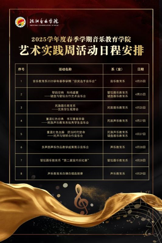 艺术实践丨音乐教育学院2025学年度春季学期艺术实践周活动日程安排