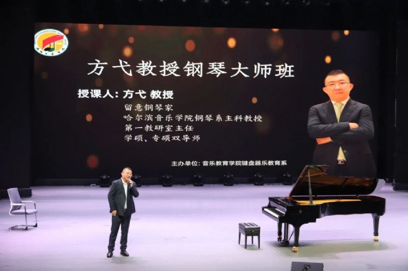 2025年4月29日,哈尔滨音乐学院钢琴系第一教研室主任、硕士生导师方弋教授应邀为音乐教育学院师生举办钢琴大师班授课。音乐教育学院领导班子成员、键盘器乐教育系教师及学生等300余人参加本次活动。大师班由键盘器乐教育系副主任陆冬主持。