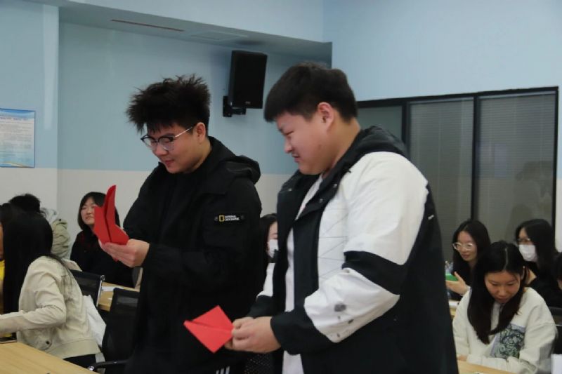 张振宇以纸飞机游戏作为切入点,带领同学们将写下了自己压力或烦恼的纸张折成纸飞机放飞。放飞的不仅仅是纸飞机,更是同学们对压力和烦恼的释放,借纸飞机的轨迹抛开对枷锁的控制。同学们也接受其他同学抛来的纸飞机,然后为他们的烦恼提供自己的想法和建议。张振宇引入霍金博士与诺贝尔奖得主关于情绪能量精准测量的研究成果,解析情绪能量层级划分逻辑。结合自身经历,从化解误会、人际沟通、积极心理暗示等维度,分享实用社交与自我调节方法。张振宇以轻柔的引导语营造沉淀的现场氛围,带领同学们闭眼跟随节奏舒展紧绷神经,在释放情绪的浪潮中保持心灵的澄澈,让情感的流动与知识的吸收同频共振。