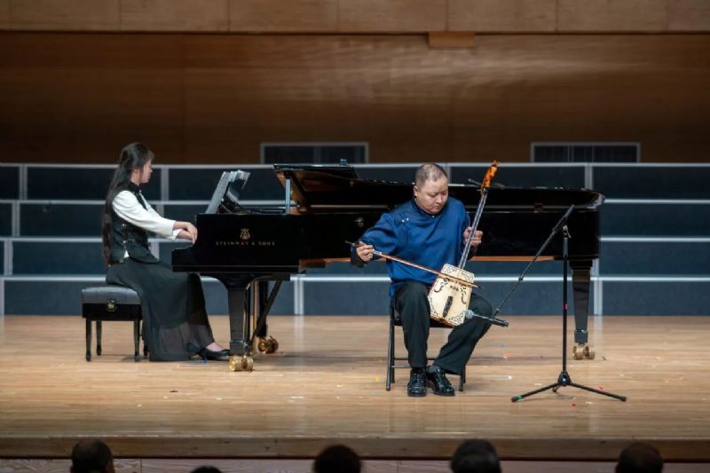 马头琴独奏《腾飞》,以其独特的音色和激昂的节奏,象征着中华民族在新时代的腾飞与奋进,引发了观众的强烈共鸣。演 奏 者:包文博 钢琴伴奏:王雪晴