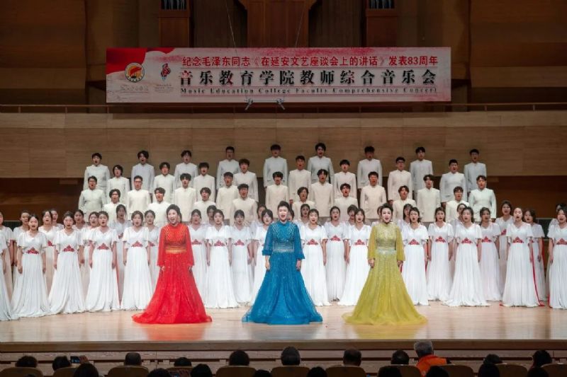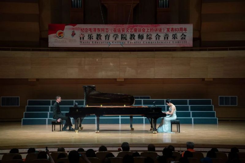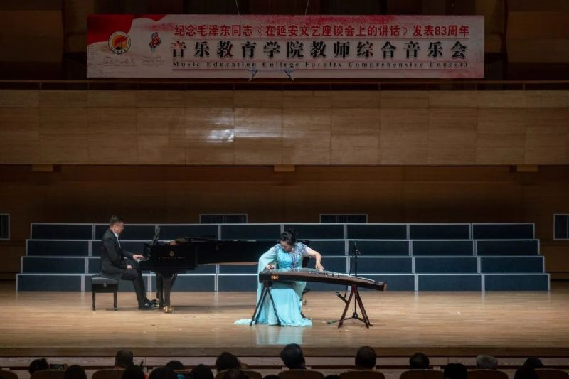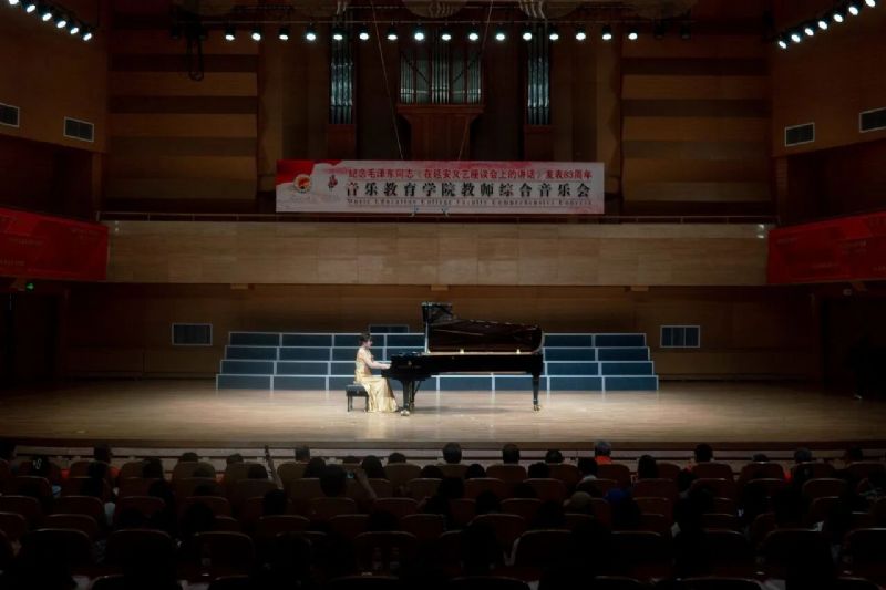 为纪念毛泽东同志《在延安文艺座谈会上的讲话》发表83周年,5月20日晚,音乐教育学院在沈阳音乐学院2025年“春秋艺韵”春季演出季期间,于音乐厅成功举办教师综合音乐会。学院党委书记赵恒心,党委副书记孙旭东,副院长张策、张庆玫,院长助理刘小龙与音乐教育学院领导班子及学院师生共同观看演出。