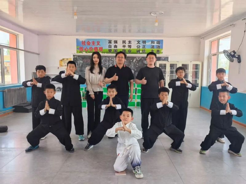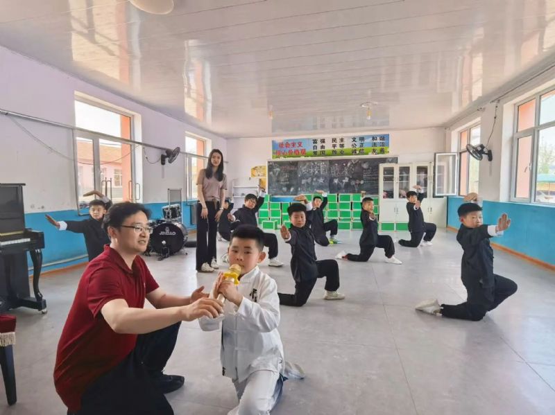 在奎德素学校,“金号角”艺术支教团受到老师和同学们的热烈欢迎。董鹏和郑淼支师生二人不顾旅途疲劳,立即投入到艺术支教的教学工作中。在四天的时间里,为在校的学生们精心编排了武术歌曲表演《精忠报国》与情景剧《愚公移山》,并在当地文化艺术节中演出,得到了一致认可和高度赞誉。该校师生纷纷表示,在老师们的细心指导下,两个节目表演整体更加完善,表演效果有了显著提高,那些在舞台上流淌的豪情与坚韧,早已化作种子,埋进了乡村少年们朝向未来的心田。