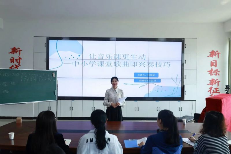 本次培训由学院音乐教育系教师党支部书记张放放主讲,以“让音乐课更生动——中小学课堂歌曲即兴伴奏技巧”为主题,结合基础音乐教学实际,通过人音版音乐教材经典曲目案例,现场演示如何将即兴伴奏技巧融入课堂实践,提升学生的音乐核心素养、创新教师的教学方法,更好地提高校本课程讲授能力。培训现场气氛热烈,参训教师纷纷表示受益匪浅,达到了“理论+实操”解渴又实用的培训目的,为乡村音乐课堂注入了新活力。