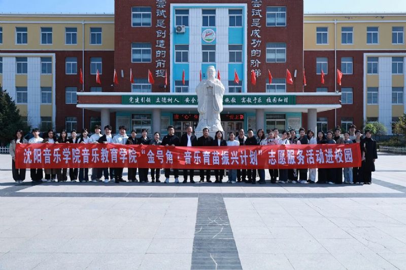2025年起,学院组织实施“金号角·音乐育苗振兴计划”,以沈阳市为中心点,辐射辽宁省内14个地级市及所属村、镇的中小学,通过对省内中小学音乐教师开展专业技能培训、帮扶村镇学校音乐课教学、深入基层开展文艺宣讲、深入基层挖掘素材开展艺术创作等形式,弘扬鲁艺精神,积极践行“文艺为人民服务”,促进校园美育浸润,提升省内中小学生音乐素养,以文化软实力助推区域经济发展和教育强省、文化强省建设,取得良好社会反响。