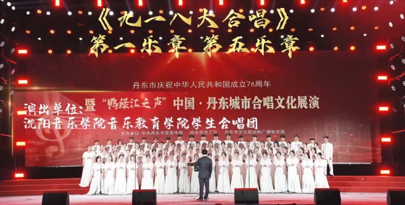26日晚,音乐教育学院学生合唱团与省内22支合唱团齐聚丹东市和平广场,共同参加“鸭绿江之声”中国·丹东城市合唱文化展演活动。作为受邀单位,学生合唱团在演出中唱响《九一八大合唱》经典旋律,激昂嘹亮的歌声化作串联历史与当下的精神纽带,既生动展现当代青年奋发向上的昂扬姿态,更让在场市民、游客在熟悉的旋律中触摸这座英雄城市的红色底蕴。演出中,舞台下掌声与喝彩交织,师生们为现场带来了一场直抵人心的高水准视听盛宴。
