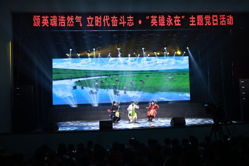 当晚,音乐教育学院“红色文艺轻骑兵”小分队受邀走进辽东学院,与化工与机械学院500余名师生携手,共同开展“英雄永在”主题党日活动。在活动中,师生们通过合唱、独奏、重奏等多元艺术形式倾情演绎了多部经典红色作品,用艺术语言礼赞英雄、讴歌信仰,现场掌声如潮。尽管学科背景迥异,但两院师生在立德树人根本任务和服务国家的使命担当中产生了强烈共鸣。