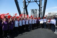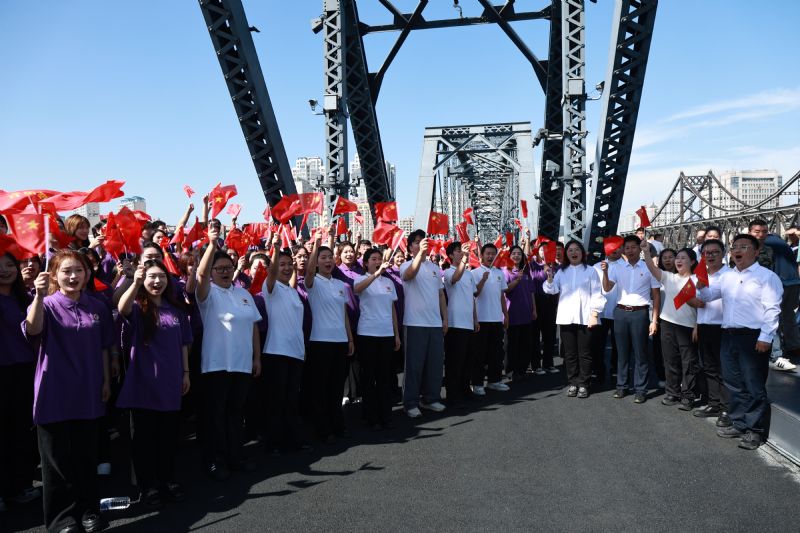 参观结束后,全体师生驱车前往鸭绿江断桥。登上断桥,脚下奔流的鸭绿江仿佛在诉说往事,仍回荡着志愿军“雄赳赳、气昂昂”的出征壮歌。师生们自发列队,高唱《中国志愿军军歌》《我和我的祖国》《英雄永在》等红色经典歌曲,歌声里既有对革命英魂的深切追思,更饱含着“英雄永在”的精神共鸣;红色旋律不仅化作砥砺初心、勇毅前行的坚定信仰,更以其蕴含的坚韧不拔的力量深深打动现场的每一个人,游客们纷纷驻足加入合唱,互动间奋进力量愈发凝聚。