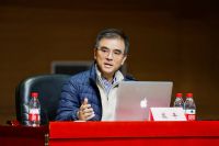 活动现场,高平教授以他创作的一种将钢琴与诗歌融合的新型创作题材的两首作品《晚窗》《白粥》及Jack Body的两首作品《The Street Where I live》《Sarajevo》为例,这种表演形式要求钢琴家在演奏的同时还要进行“唱”,其中包含美声、念白声、喊叫声、呼气声等多种有音高或无音高的发声方式。这类作品超越了传统的艺术歌曲伴奏模式,实现了钢琴与诗歌在艺术本体层面的平等对话与有机融合。钢琴不再是单纯的伴奏工具,而是与人声共同构成一个完整的音乐——文学叙事整体。通过现场演奏钢琴与独白的对话,分析创作理念,生动展现了文字与音乐在作品中相互交织、彼此赋能的精妙关系,从创作背景、技法运用、文化内涵等多个维度,对作品进行了细致解读。不仅用音乐渲染诗歌的意境,更直接用琴声“言说”、模仿、呼应甚至解构诗句,使钢琴部分本身也具有了强烈的叙事性和表现力。人声的吟唱则更贴近诗歌的原始韵律与情感张力,时而吟诵,时而歌唱,与钢琴交织出丰富的音响层次。他的作品具有鲜明的个人特点与国际视野,他的创作在传统革新的基础上使钢琴作品有一种新意迭出、畅快淋漓的感觉。在为与会师生呈现了一场兼具学术性与艺术性的视听盛宴的同时,也给大家带来两个方面的启示:第一是我们在现代音乐的环境下如何去捕捉创作的灵感,第二是如何在钢琴作品中去探究现代音乐,在现代音乐背景下该如何创作及演奏钢琴作品。高平教授的这一探索,不仅拓展了钢琴的艺术表现疆界,为中国钢琴音乐注入了深厚的文化内涵与鲜明的当代气质,也为音乐与文学的跨媒介融合提供了富有创见的实践范例,在当代中国钢琴作品创作中具有独特的价值与意义。