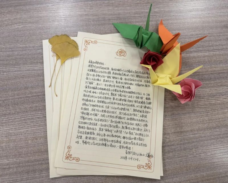 这封信,是校园日常与家乡牵挂的双向奔赴;这封信,是跨越山海的深情对话。当落叶与笔墨相遇,当思念与文字相融,相隔的距离便不再遥远,初冬的寒意也会被这份心意焐得温热。