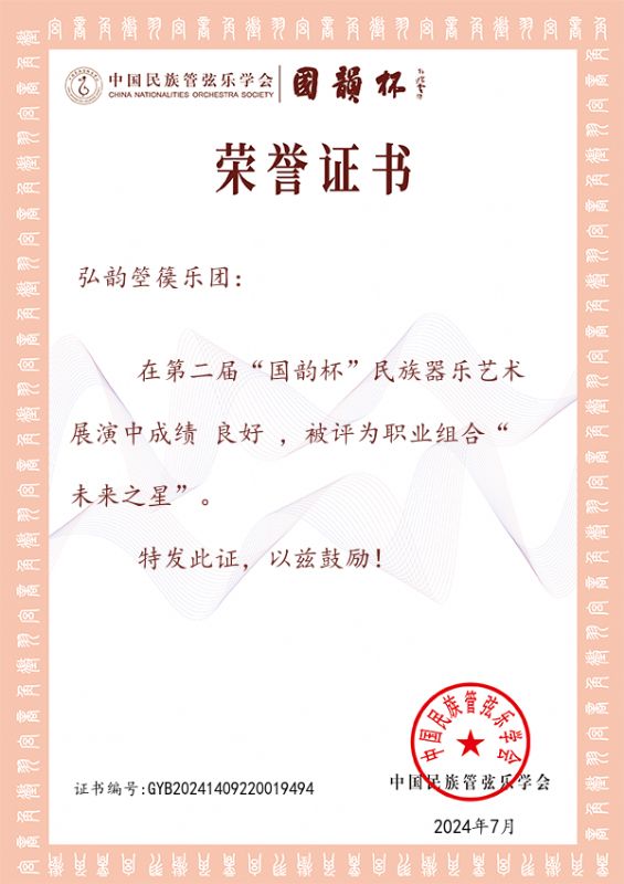 第二届“国韵杯”民族器乐艺术展演,是中国民族管弦乐学会精心打造的全国性艺术展演展示交流活动。本次展演活动的职业组青年A组、职业组合组参演选手众多,所涉及职业演出团体、音乐专业院校的在校注册学生、青年教师、职业演奏员等。在师生们共同努力下,最终获得了一项“民乐之星”、五项“未来之星”、八项“希望之星”称号。在此,对展演活动中师生们取得的优异成绩表示祝贺!
