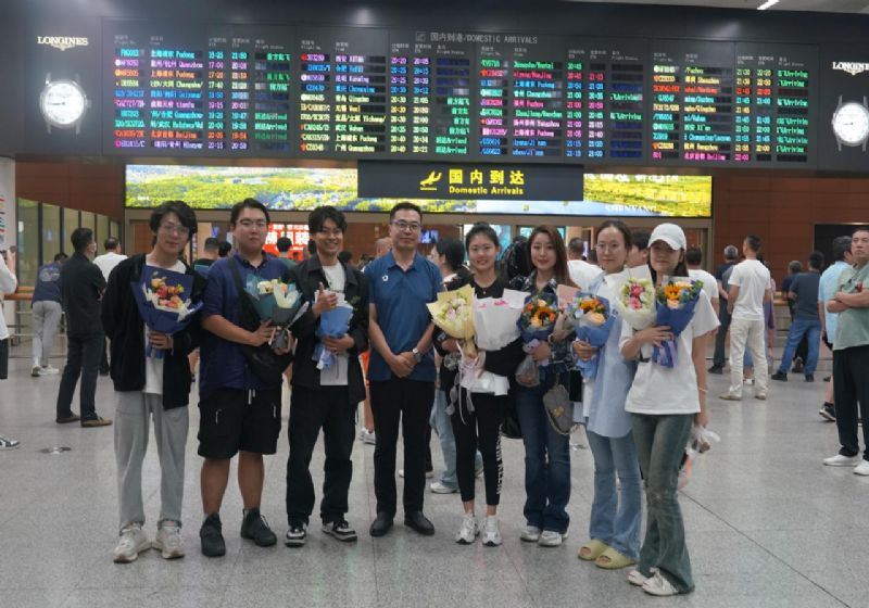 8月27日晚,同学们圆满完成演出任务回到沈阳,系领导专程到机场迎接。