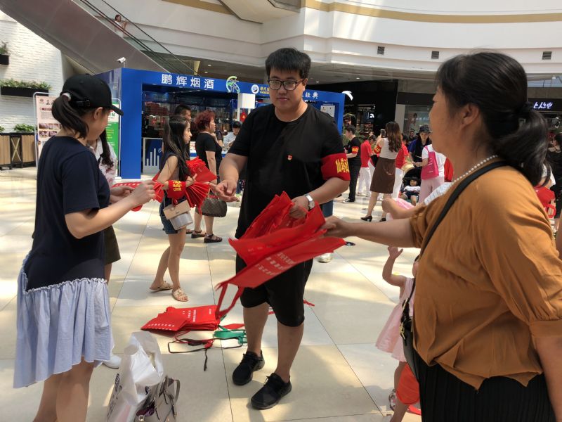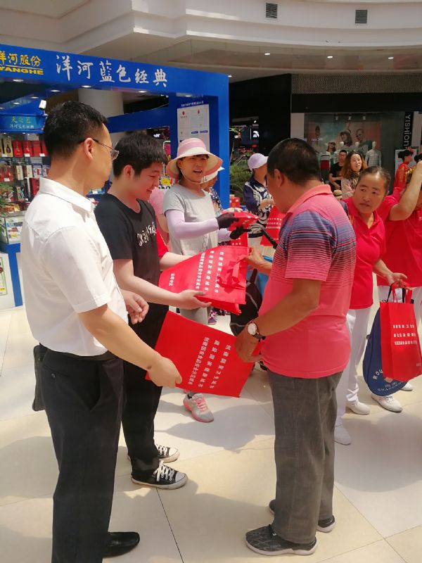 管弦系党总支党员师生、积极分子为群众发放“创城”宣传单