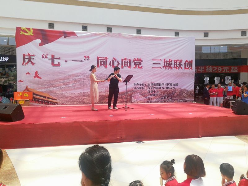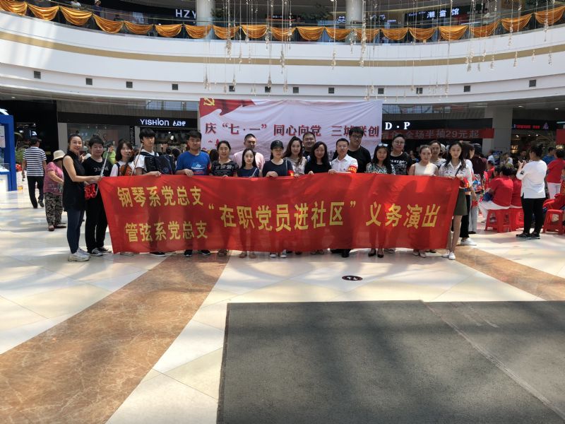 按照省委组织部统一部署,根据市委关于开展“在职党员进社区”义务服务周活动的有关安排,值此“七•一”来临之际,管弦系党总支与钢琴系党总支于6月29日赴上亿广场与白塔街道仙塔社区党员们一起开展艺术惠民活动。