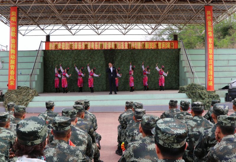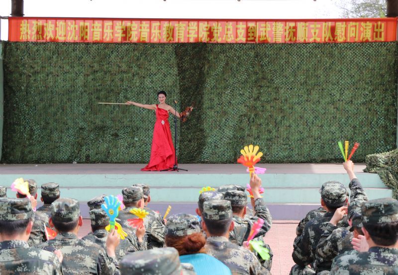 为庆祝新中国成立70周年,深化师生爱国主义教育,音乐教育学院党总支结合《2019年度“同唱一首歌 共抒爱国情”爱国主义教育系列活动方案》,于5月15日开展系列活动之走进军营,到武警抚顺支队慰问演出,武警抚顺支队政治委员刘维杰、副支队长丁仁志、政治工作处主任梁忠周、音乐教育学院党总支书记韩春凌、副书记于佳鑫与现场200多名官兵及转播分会场1000多名官兵共同观看了演出。