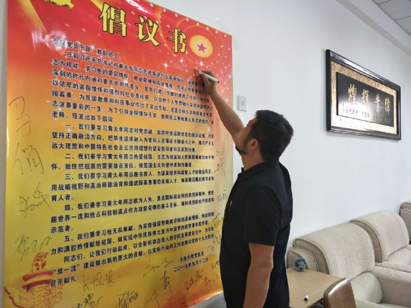 座谈会结束后,全体党员干部在《倡议书》上签字。党总支号召全院党员干部和教职工争做黄大年式好党员、好教师,以全新的姿态投入到学院发展建设当中,为学院“双一流”建设做出新的更大的贡献,以实际行动和工作业绩迎接党的十九大胜利召开。