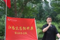 文艺汇演在一首《草原上升起不落的太阳》中拉开序幕。“红色文艺轻骑兵”第100小分队以独唱、独奏等表演方式开展文艺演出。深情演唱了《向往》、《我爱这蓝色的海洋》、《万疆》、《我的祖国》;演奏了《瑶族舞曲》、《浏阳河》、《回家》、《万疆》等10个节目。现场掌声热烈,喝彩声不断。最后“红色文艺轻骑兵”第100小分队和金地社区工作人员、群众共同演唱了《我和我的祖国》。