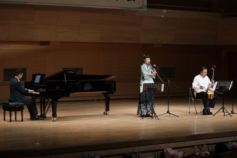本次音乐会首演了由陈晓光原创的洞箫协奏曲《白鹤楼的传说》之第二乐章《洞箫与马头琴的对话》(艺术指导:包文博)以及由赵越超先生作曲、陈晓光改编的曲笛协奏曲《忍冬赋》(艺术指导:马骏)。