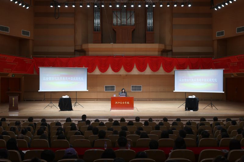 为教育引领党员、干部和教师深入学习领会党的二十届三中全会精神,切实把思想和行动统一到党中央关于进一步全面深化改革的重大决策部署上来,11月13日,学院党委举办干部能力提升工程“名师大讲堂——学习贯彻党的二十届三中全会精神”第13期专家报告会,邀请省委党校区域经济发展教研部主任曲岩教授作专题辅导报告。学院领导、处科级干部、党支部书记、各教学单位下设教研室(系、学科)负责人、专职组织员、专职党务工作者、辅导员、马克思主义学院教师以及各民主党派支部和统战团体负责人等300余人参加报告会。报告会由党委副书记孙旭东主持。