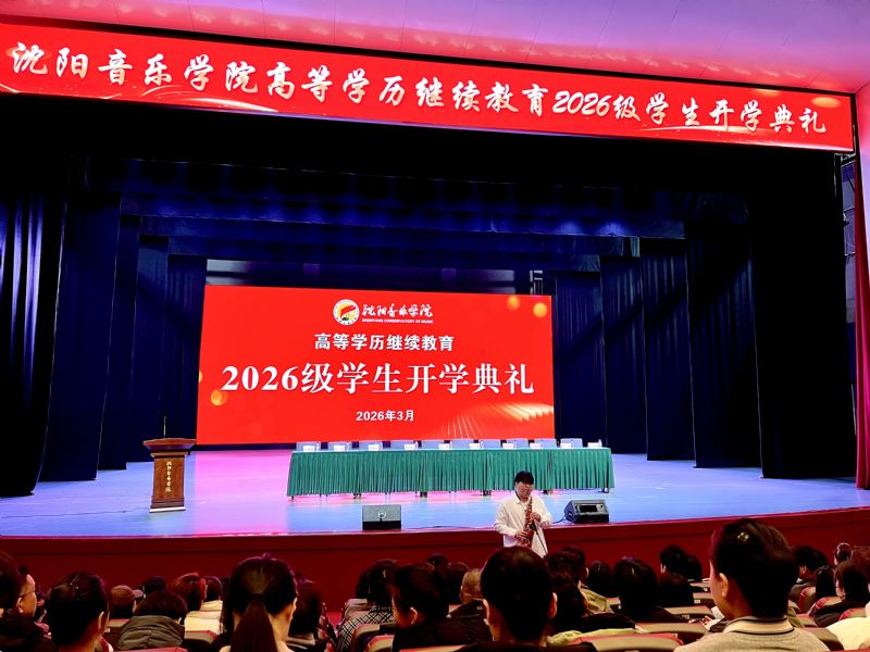 3月20日,沈阳音乐学院成人高等学历继续教育2026级学生开学典礼在长青校区隆重举行。沈阳音乐学院副院长庞渤,党委学生工作部(党委武装部、学生处)部长王爽,工会专职副主席兼机关党委书记邹天伦,招生就业处(创新创业中心)副处长褚祎楠,继续教育学院院长申淑征、党总支书记吕威霖、副书记张立、副院长高倩、成人教育办公室主任官圆媛、社会艺术水平考级办公室主任刘家辰,继续教育学院全体教师及2026级全体新生参加典礼。典礼由申淑征主持。