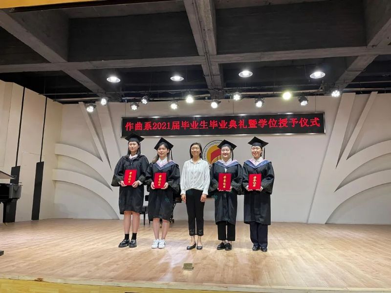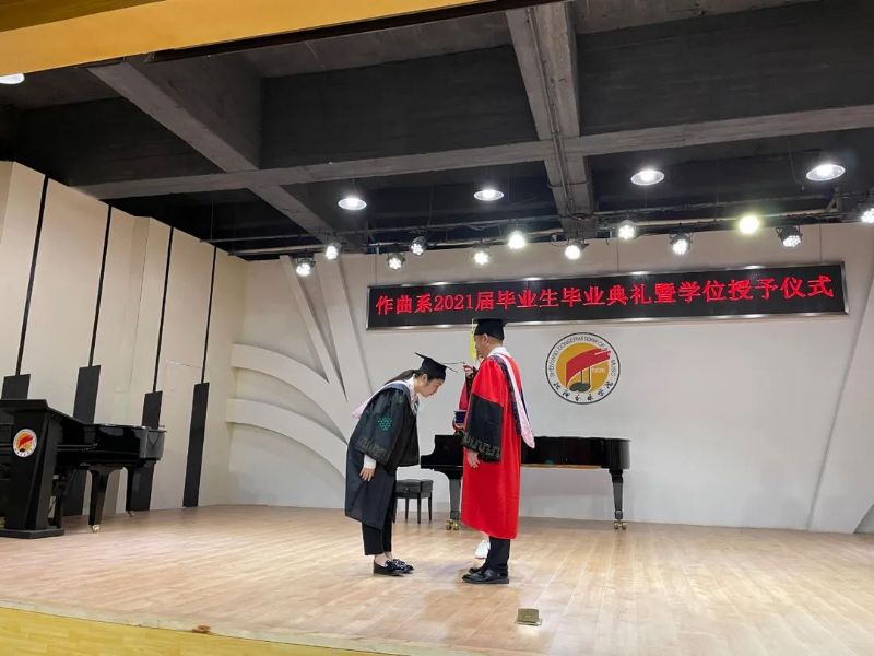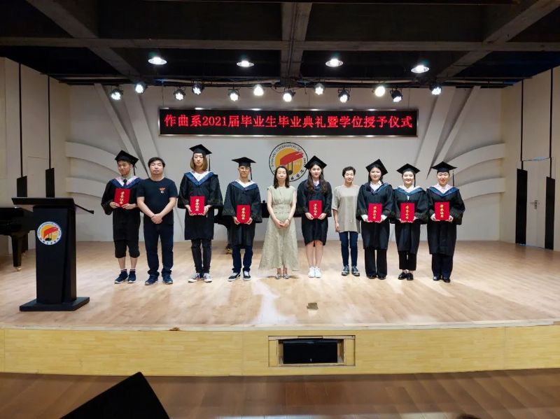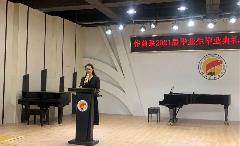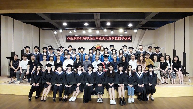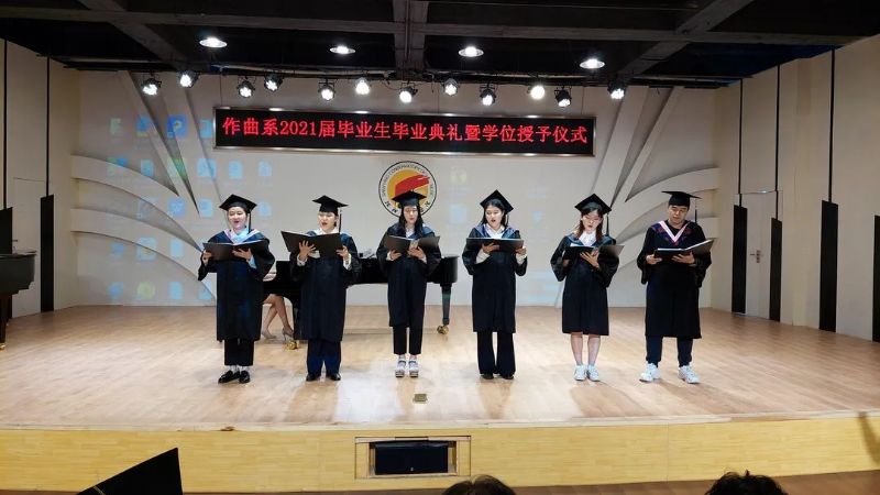 6月23日下午,作曲系2021届毕业生毕业典礼暨学位授予仪式在第五教学楼演艺厅隆重举行。原学院副院长范哲明教授、作曲系班子成员、毕业生导师、教研室主任、专业教师代表以及2021届全体毕业生出席典礼。毕业典礼由辅导员齐悦主持。