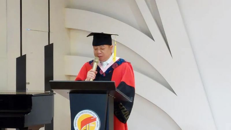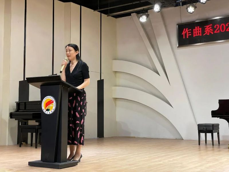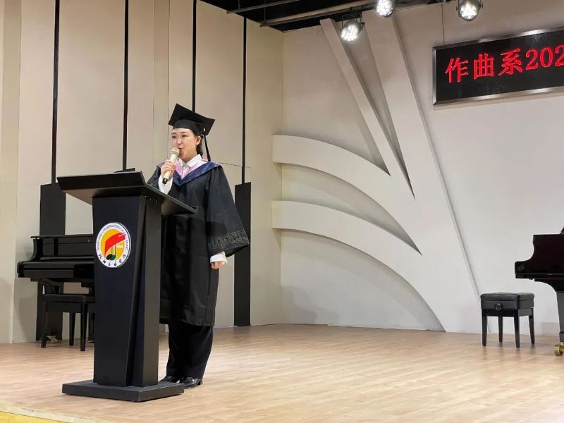 系主任吴基学代表作曲系作毕业寄语。他向所有毕业生表示最热烈的祝贺,向付出辛勤劳动的各位老师表示最诚挚的敬意和感谢,并对毕业生们提出希望,希望同学们能够保持积极进取之心,脚踏实地,勇于担当,宽容自信,热爱生活,朝气如虹,再创辉煌!