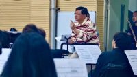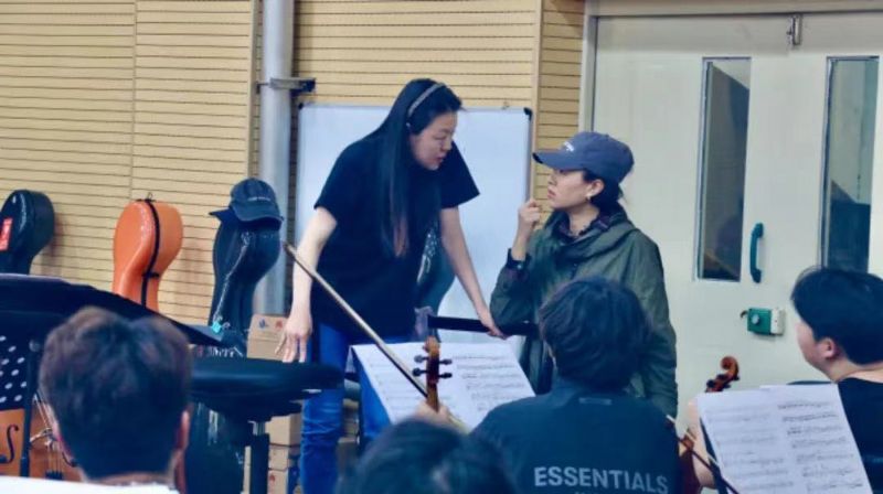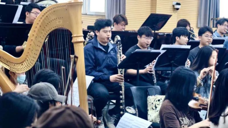 4月22日-26日,由沈阳音乐学院作曲系教师创作、沈音•北方交响乐团演奏的大型交响作品《决战》(暂定名),在第五教学楼一楼紧张排练中。作曲系主任韩焱、管弦系主任程岩,与作品作曲家共同指导排练,指挥专业研究生观摩学习。此次排练由李晓楠、颜言老师执棒。