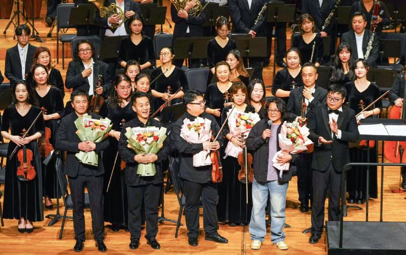 12月7日晚,作曲系刘晖教授创作的「英雄主题」大型交响套曲《传颂》在盛京大剧院隆重演出。音乐会用高雅艺术的形式生动讲述了百年辽宁的发展历程,用极富感染力的交响乐传播和弘扬着“六地”红色历史、红色精神、红色文化的丰厚与辉煌,令现场千余名观众纷纷沉醉在交响音乐的美好与“六地”精神的自豪当中。